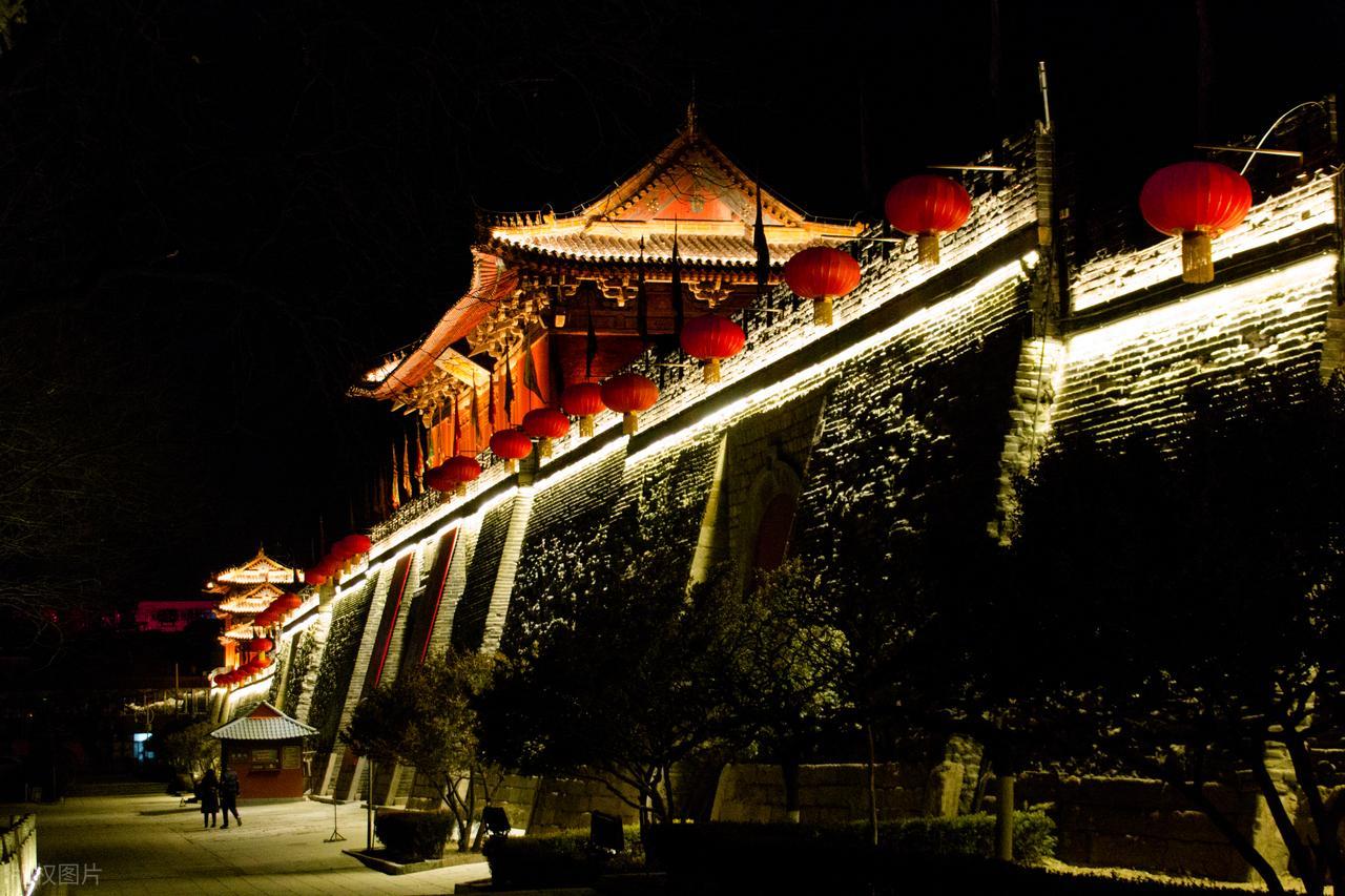 泰安岱庙夜景,暖光勾勒古建筑庄重轮廓