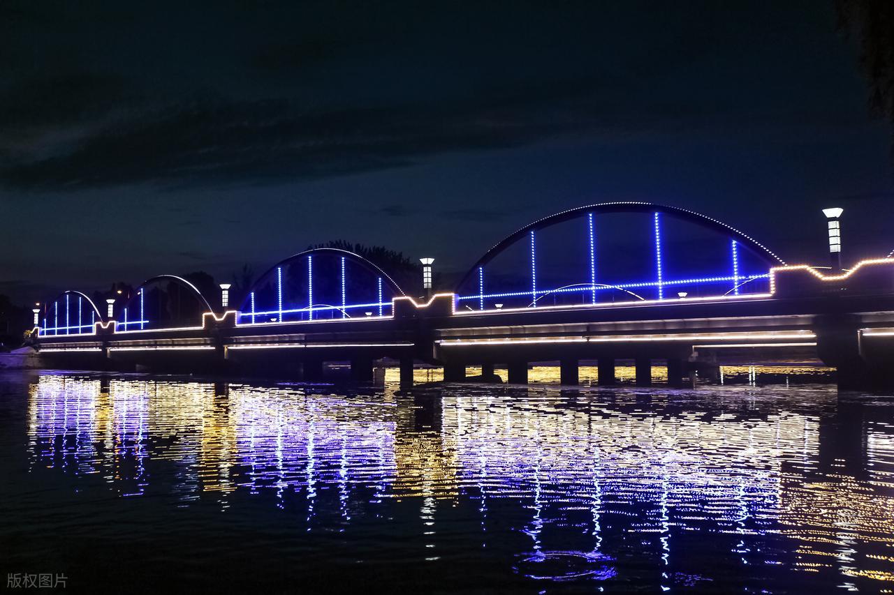 临沂沂河夜景,彩虹桥与互动光影相映成趣