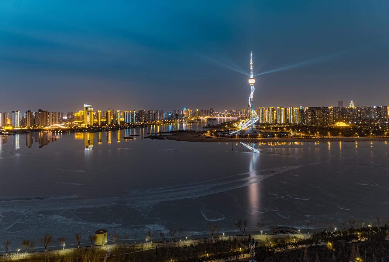 东营黄河入海口,灯光再现 “黄龙入海” 奇观