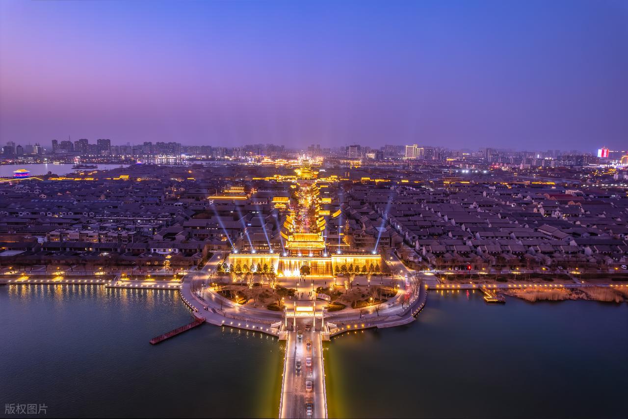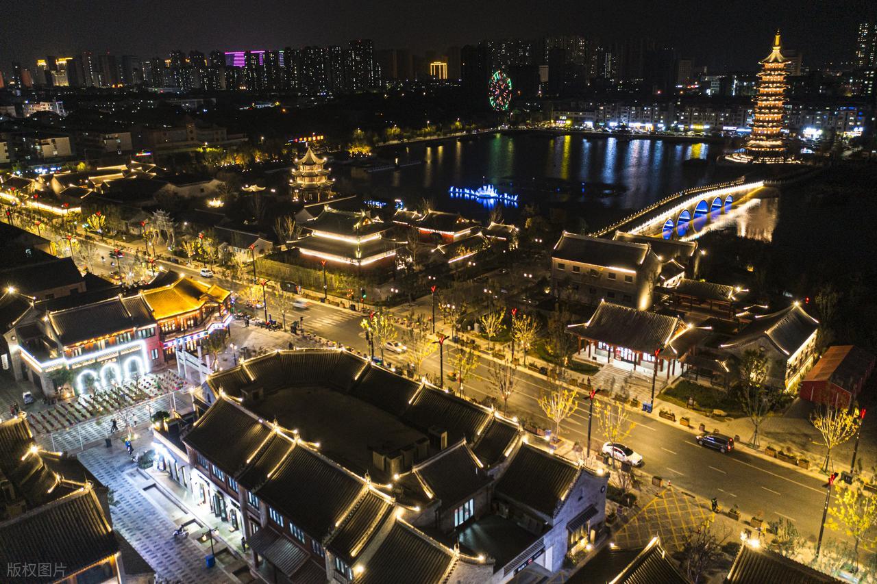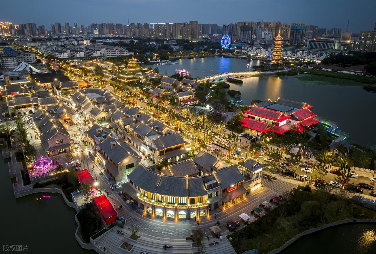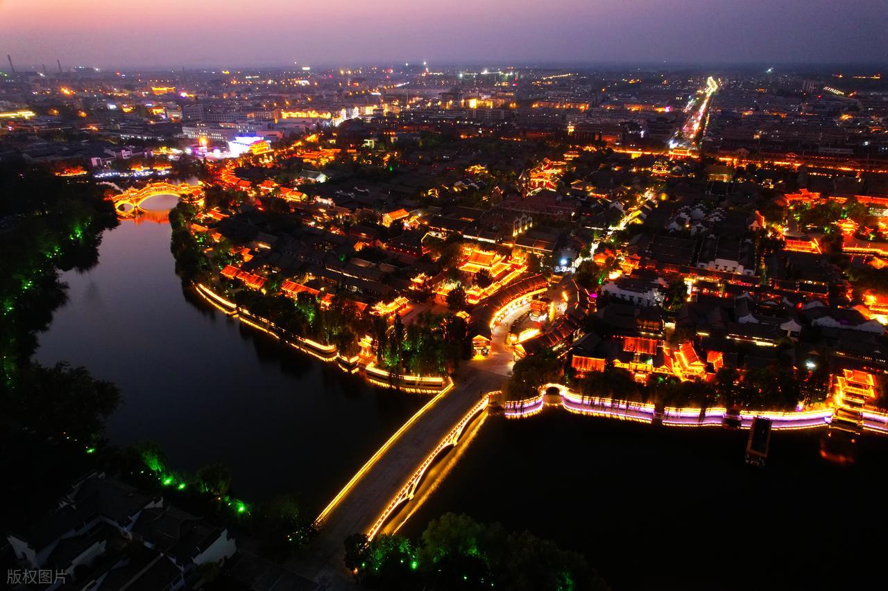枣庄台儿庄古城,灯笼长廊与运河夜色交融