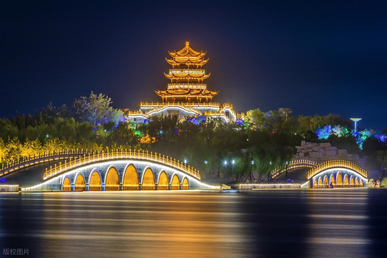 枣庄将红色文化与运河风情相融,台儿庄古城的灯笼沿古运河两岸排布,灯光映照下的古城墙与河中游船构成水墨画卷,夜间的“红色光影剧场”还通过灯光演绎台儿庄大战历史。临沂以“沂河夜景带”为核心,沂河大桥的七彩光带与涑河的生态灯光呼应,书法广场的地面投影循环播放王羲之书法作品,让“书圣故里”的文脉在夜色中流淌。