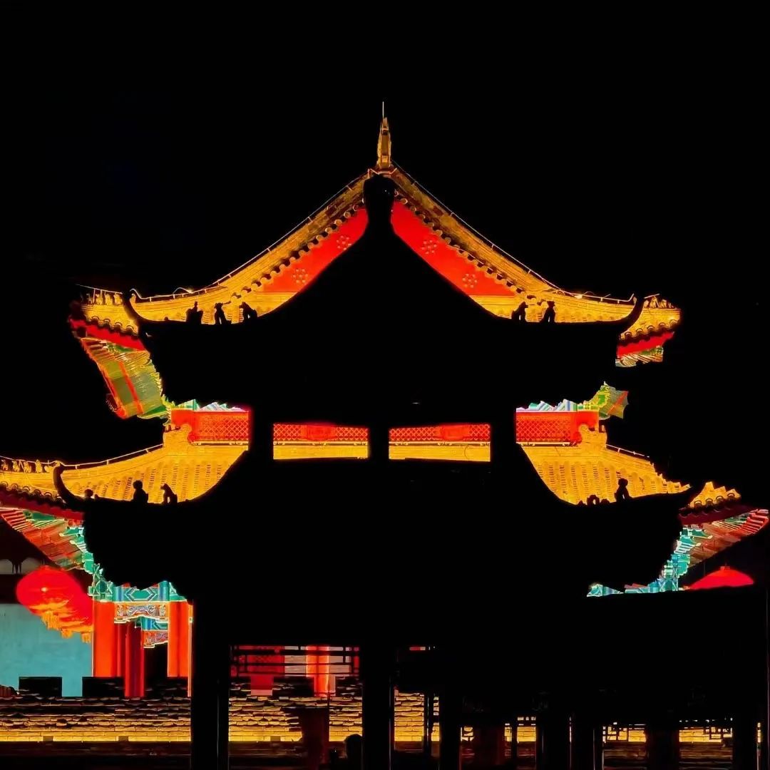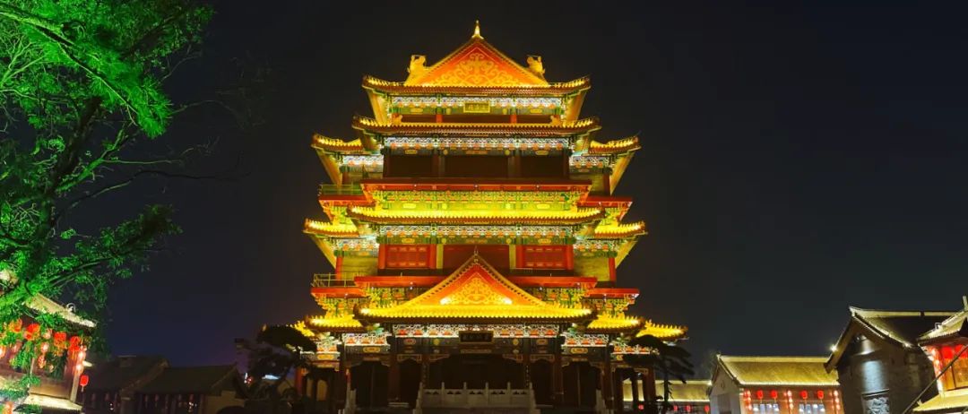 夜景灯光以“婆娑光影四季春秋,灯火阑珊博物寻源”为夜游照明主题,明清商业街穿越历史展现光影四季,通过光影表达城市博物历史文化内涵,游览即是寻觅博物历史文化的过程。